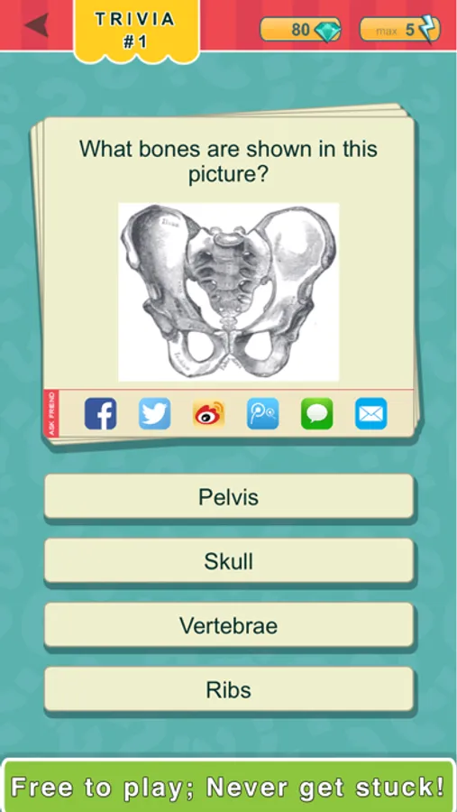 - Stuck on a question? You can always pass it for free! No in-app purchase necessary!