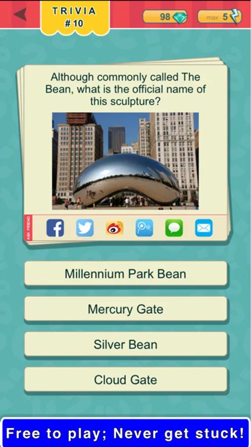 - Stuck on a question? You can always pass it for free! No in-app purchase necessary!