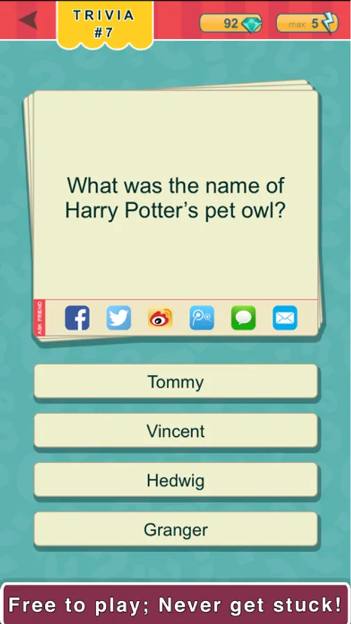 - Stuck on a question? You can always pass it for free! No in-app purchase necessary!