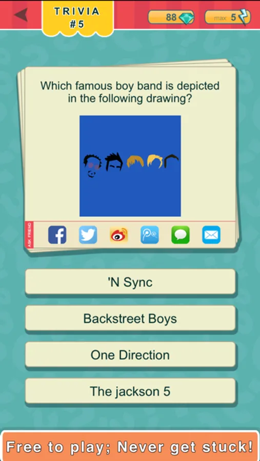 - Stuck on a question? You can always pass it for free! No in-app purchase necessary!