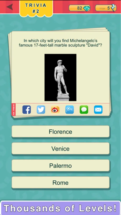 Thousands of original questions created by experts. Simple game play: 1 question, 4 possible solutions, which is the correct answer?