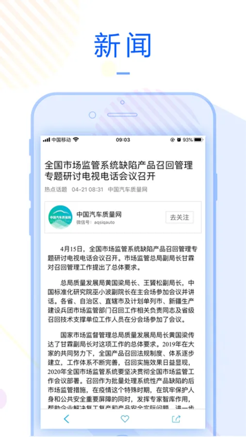 车质宝典APP是《中国汽车质量网》在线上同步推出的全新应用,设立新闻、汽车、投诉、个人中心四大板块,在满足广大用户手机阅读需求的同时也为他们提供了便捷高效的浏览方式。