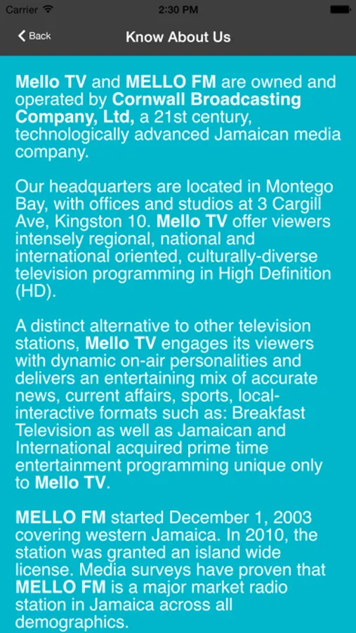 Mello TV is Jamaica’s only 24 hour live streaming Television station.