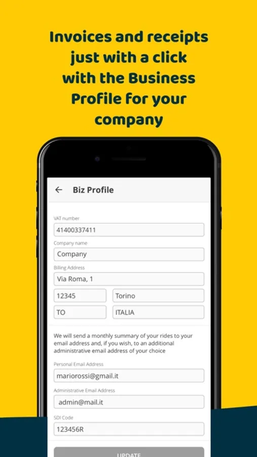 - It's all under control: by setting up a company profile, you will receive receipts for rides in the name of your company