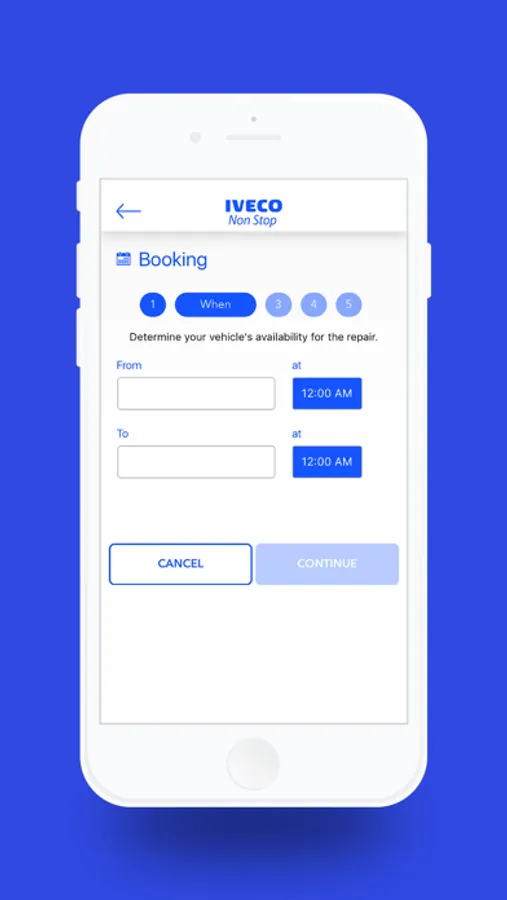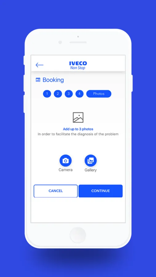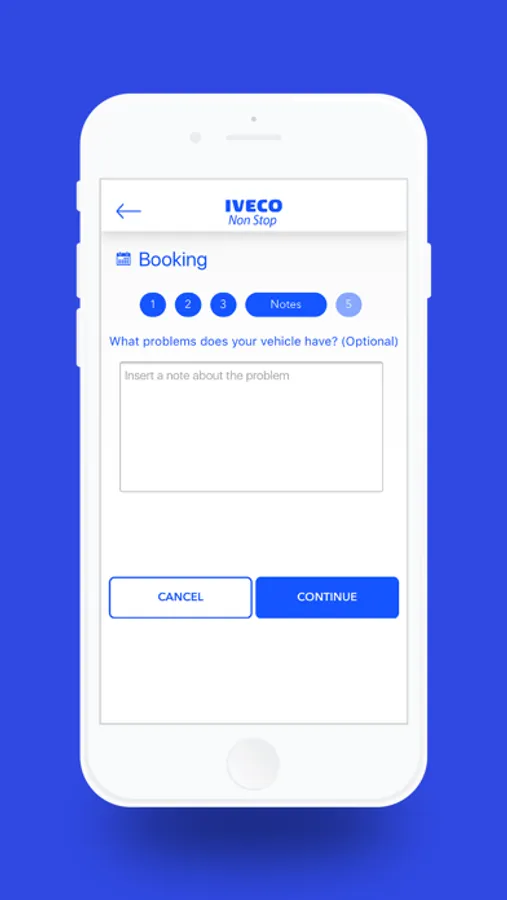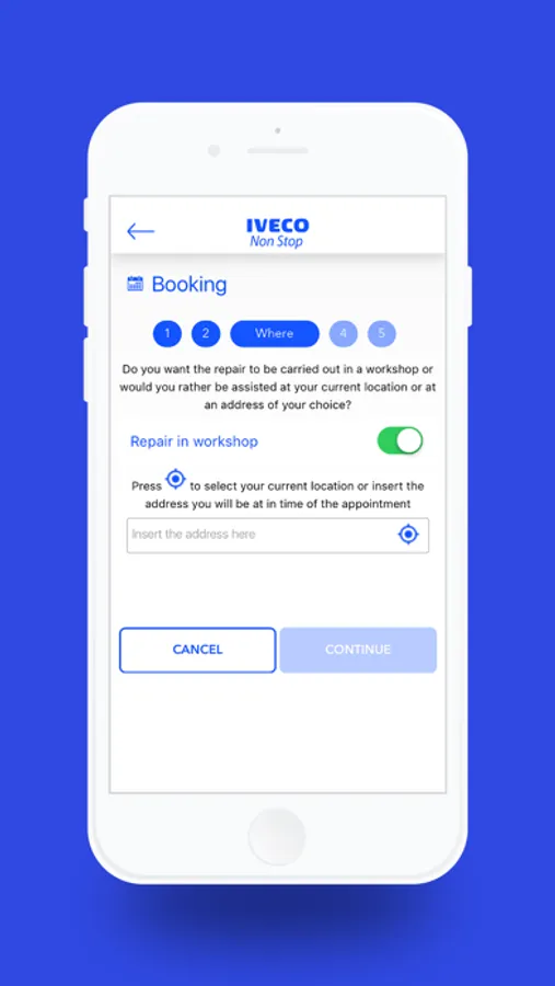 The IVECO Non Stop app can be used not only in case of roadside breakdown, but also if you want to book a repair. You can select the time window and the location (providing the position, workshop or specific address) and the app will confirm your booking.