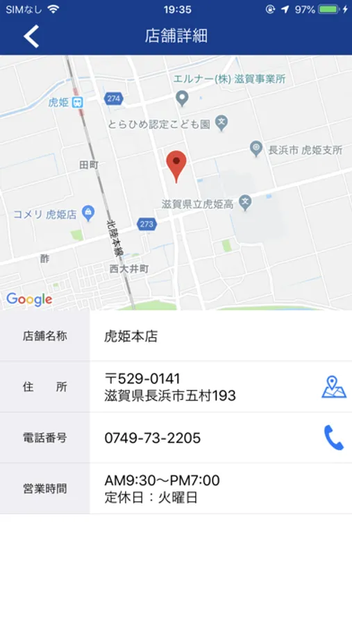 ○GPSを利用し、現在地から最寄りの店舗が検索できる