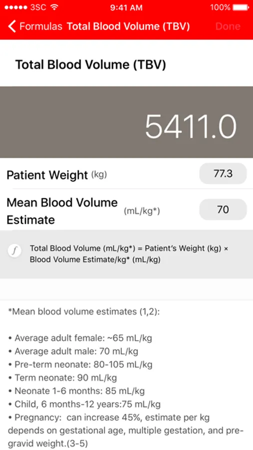 • Formulas: total blood volume, plasma volume, RBC volume and # of units to screen for antigen-negative units.