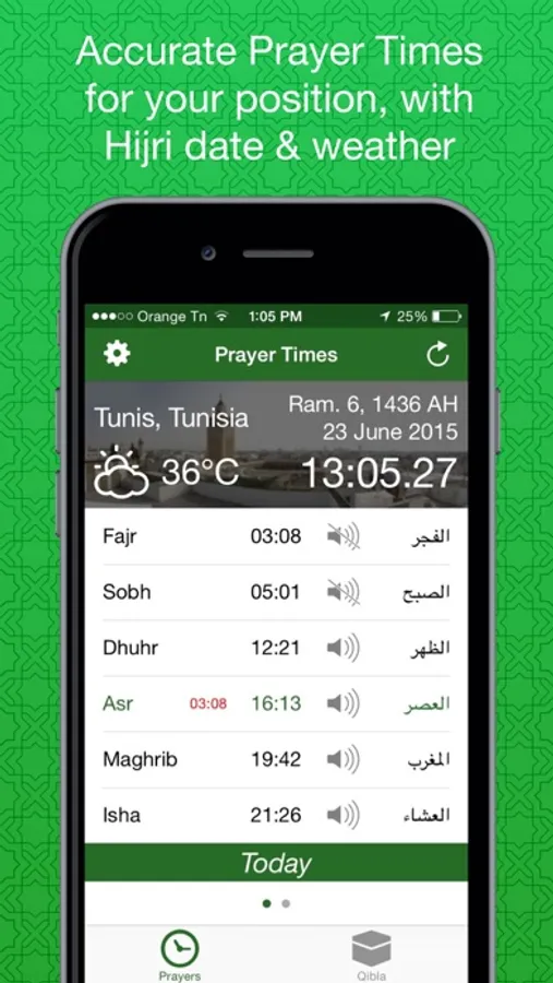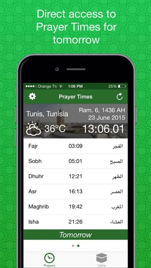 - See the prayer times for today and also for tomorrow by only swiping to the right