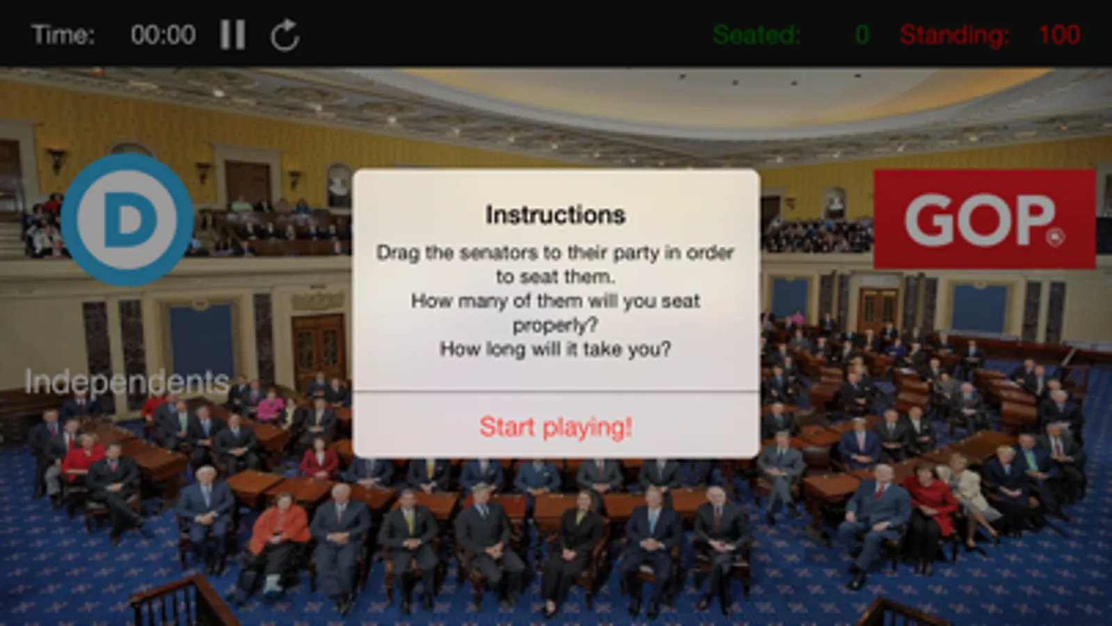 The Senate Game uses images and information downloaded from the United States of America Senate webpage (http://www.senate.gov) and from Wikipedia (http://en.wikipedia.org).