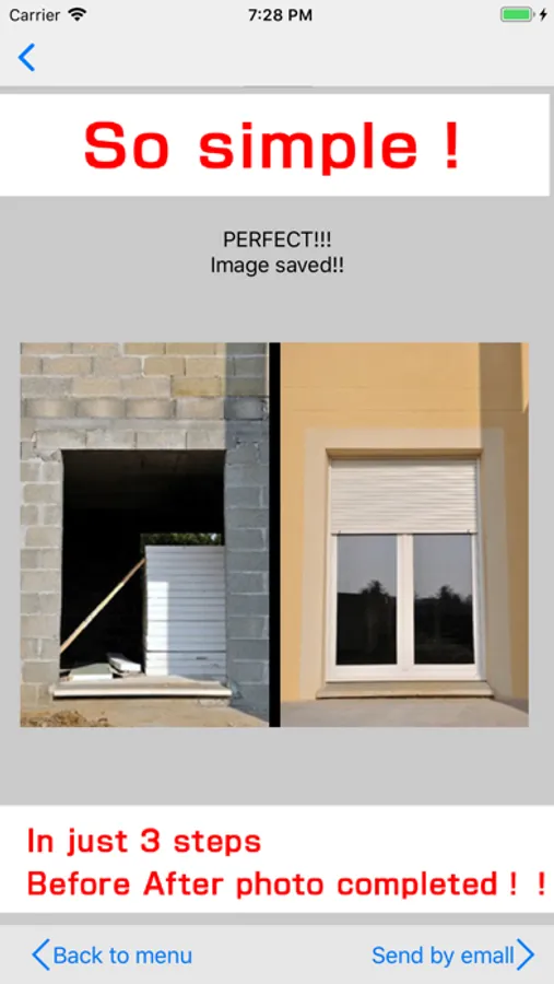 Using this Perfect Before/After camera (PBA), you can easily take ‘before’ and ‘after’ photos with exactly the same composition and instantly combine them into one saved photo.