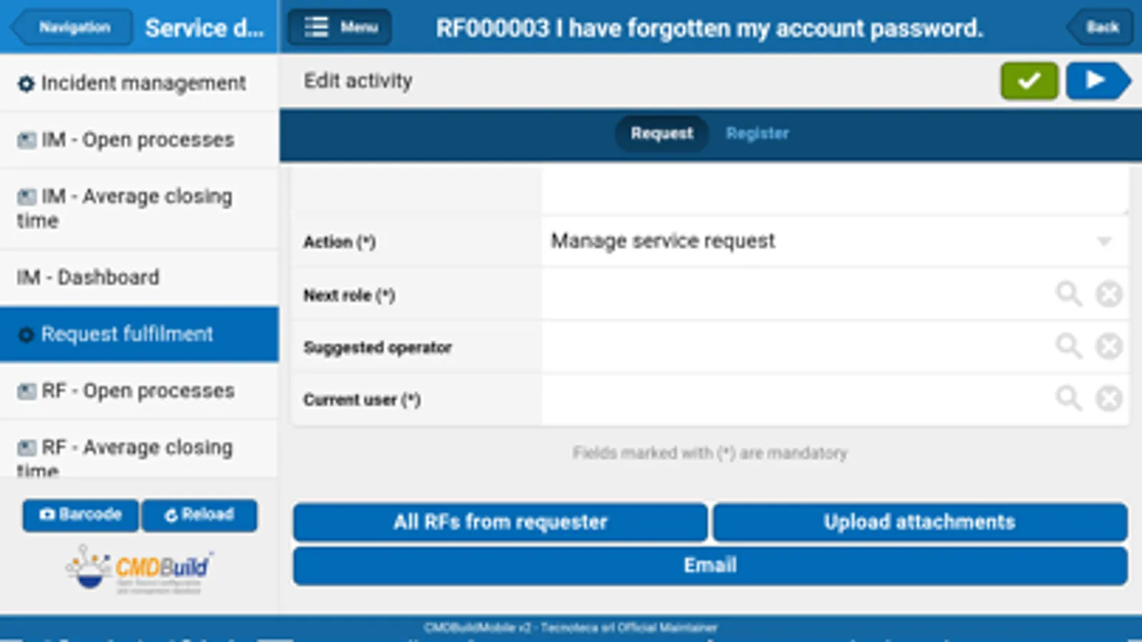 CMDBuildMobile is available to all subscribers of the maintenance service and allows you to access CMDBuild data on you tablet or smartphone. It is compatible with CMDBuild 2.3.1 or lather.