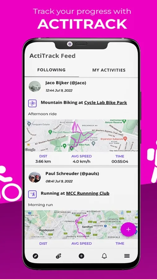 - Record, save, and share any of your activities. With ActiTrack you will see information like your distance travelled, average speed, time, and your breadcrumb trail. Your activities will be visible to all your friends.