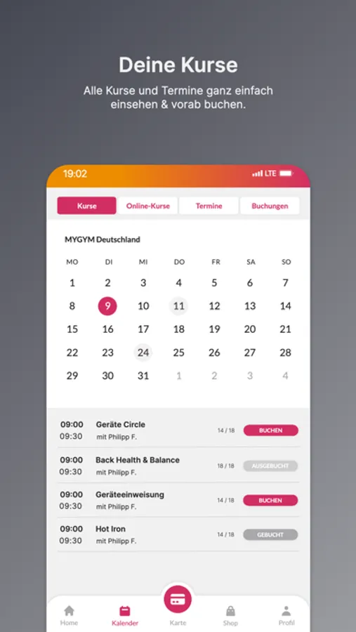 Mit der MYGYM Deutschland App hast du dein Fitnessstudio immer in deiner Hosentasche mit dabei! Du kannst ganz einfach und schnell Kurse buchen, Deine Mitgliedsdaten ändern und Neuigkeiten über deinen Fitnessclub erfahren.