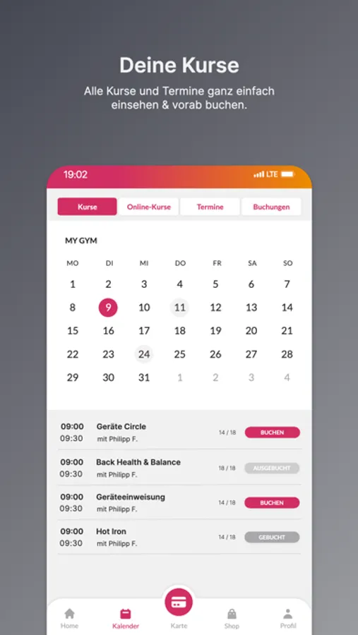 Mit der MY GYM Österreich App hast du dein Fitnessstudio immer im Blick. Erfahre alle Neuigkeiten als Erster, schaue wann und wie lange dein Studio geöffnet ist und buche deine Kurse ganz einfach über unseren mobilen Kursplan. Verwalte deine Stammdaten und Verträge direkt in der App und lade deine Freunde zum gemeinsamen Training ein.
