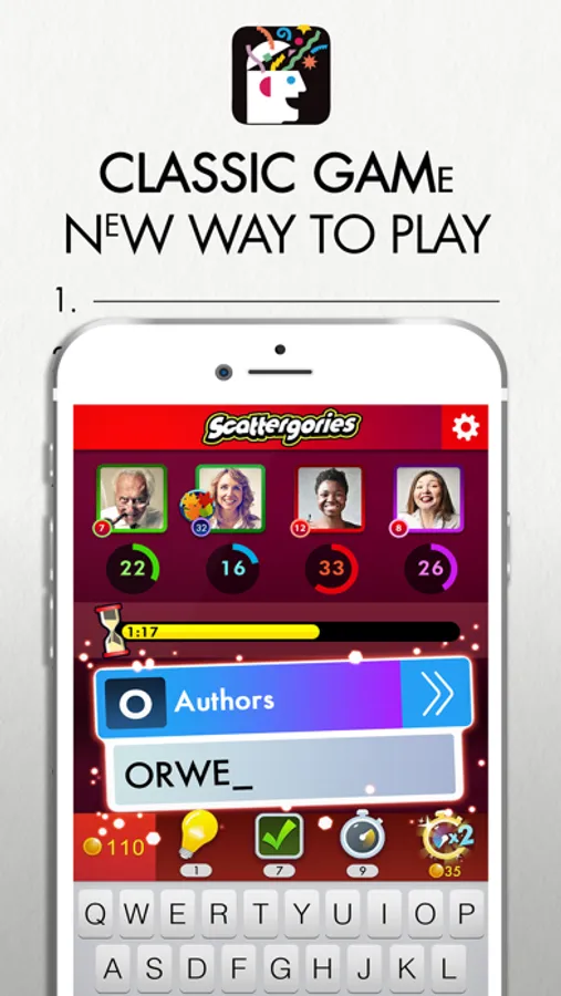 THINK FAST! Name a fruit that starts with the letter "B". What about an animal that starts with the letter "R"? The more creative your answers, the more points you score! Challenge a random opponent or play with your friends and family. With the Scattergories app, the party never has to end!