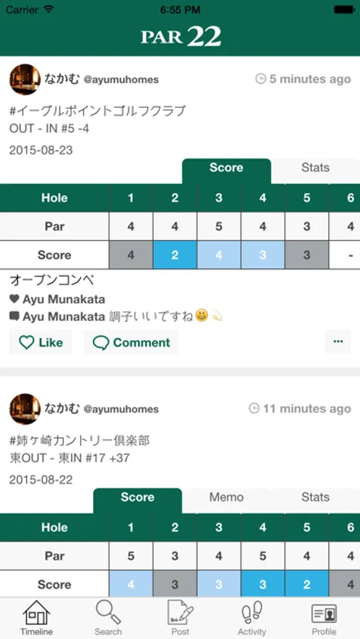 PAR22 is a simple way to post and share your golf scorecard and photos. By following not only people you know, see other golfers' are enjoying GOLF.