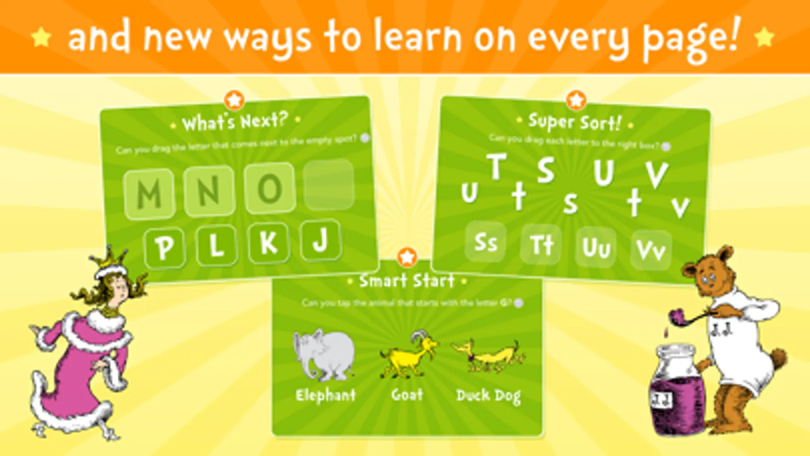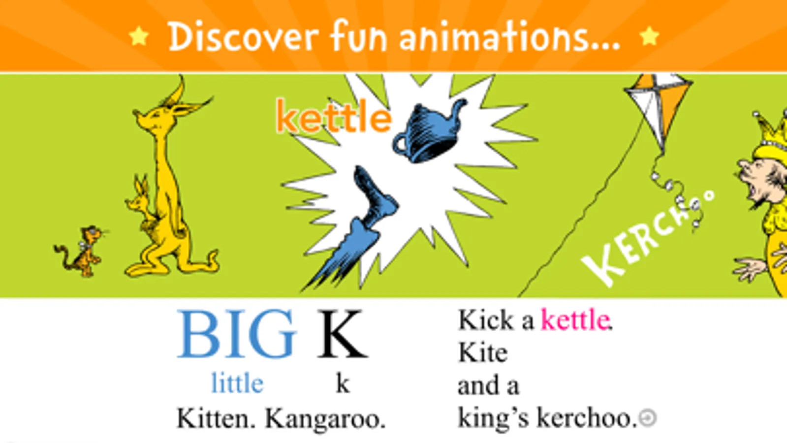 The best-selling, classic book “Dr. Seuss’s ABC“ comes to life with playful interactivity, delightful animations and learning activities! From Aunt Annie riding an Alligator to the Zizzer-Zazzer-Zuzz, learning to read is an unforgettable adventure with Dr. Seuss!