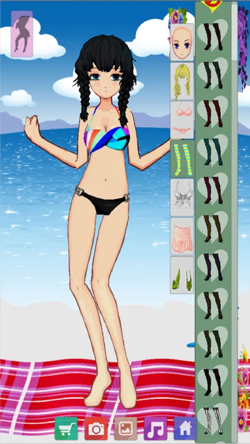 Choose a different theme as the background scenery, whether it's the sunny beach, a sophisticated cafe, or a trip to Paris! Then you can save your anime dress up outfits in your image gallery on your phone or tablet device. Show off your fashionista skills to your friends and family, or... here's a great idea: create different looks for your cutie fashion anime girl and use them as the display image in your phone contacts!