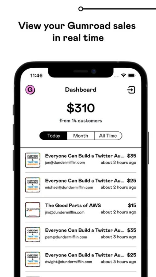 Gumroad creators—your Dashboard app is here! In real-time, you can track your daily, monthly, and all-time sales on Gumroad (pre-fees). Allow for push notifications and you’ll be alerted when you make a sale.