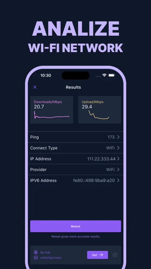 Keep an eye on your network performance with real-time speed graphs. Track fluctuations and identify peak usage hours.