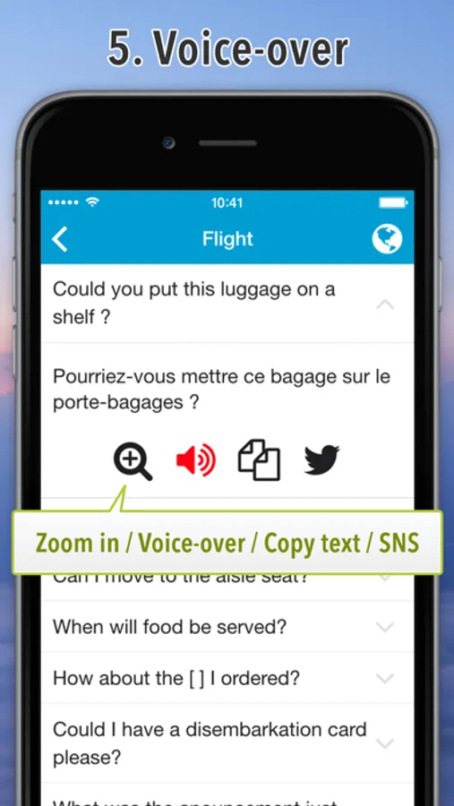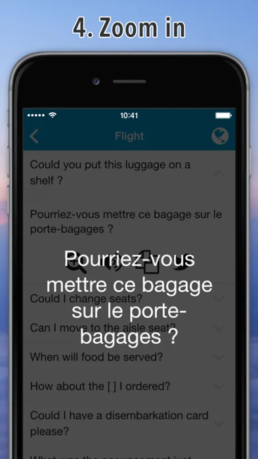 With the tap of a button the app gives you the translation and pronunciation of whichever phrase you need.