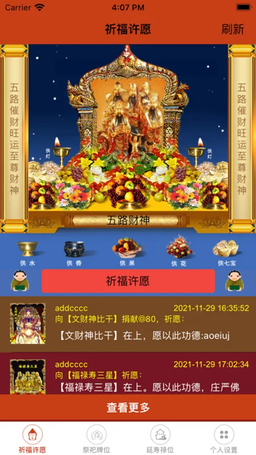 2.贡品丰富,供香、供花、供水、供果,自带佛光加持效果