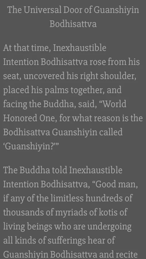 The Chapter 25 of the Lotus Sutra is "The Bodhisattva Avalokiteśvara" (The Universal Door of Guanshiyin Bodhisattva) - This chapter is devoted to Avalokiteśvara, describing him as a compassionate bodhisattva who hears the cries of sentient beings, and rescues those who call upon his name.