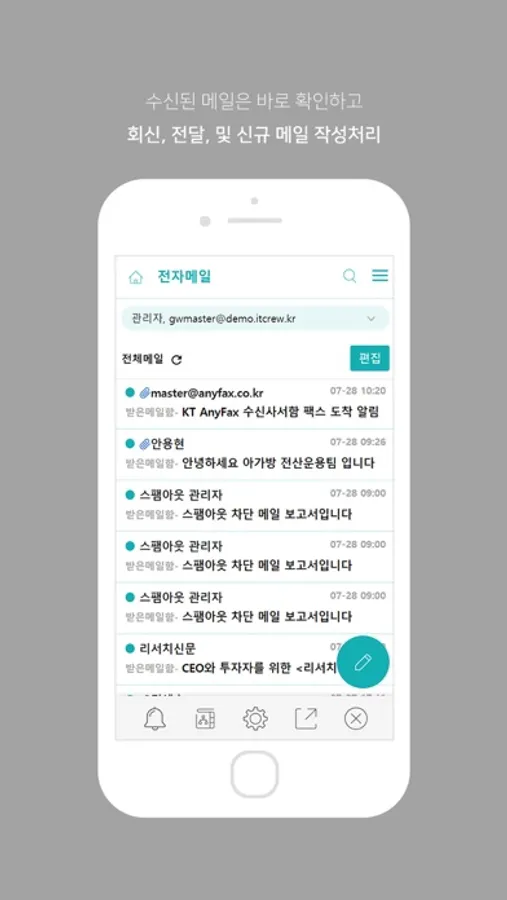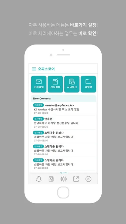 "OfficeCore 그룹웨어의 기능을 모바일 환경에 최적화된 UI/UX로 제공합니다."