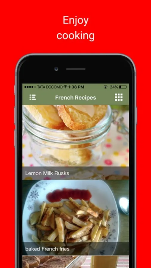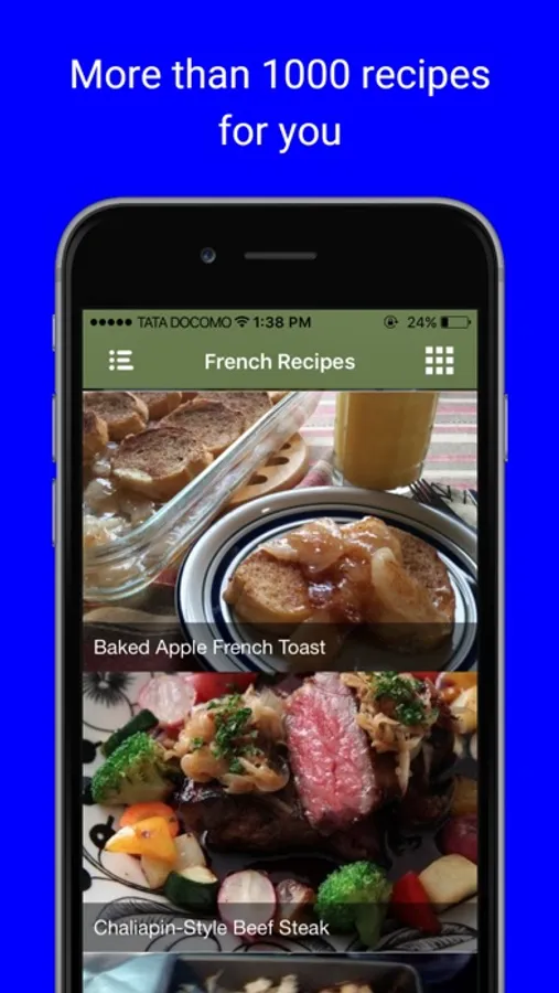 French Recipes app have healthy and delicious food recipes for you. Try new recipes at your home using our app. We will add new recipes at frequent intervals of time. You will love all recipes added in this app. Enjoy cooking with French cookbook app. French fries are very common dish in all countries which is from France. For all French recipes lovers we present very cool French cookbook app for mastering the art of French cooking. With almost all dishes French fries will go good like burgers wraps and pizza. Cheese and wine are another major part of French recipe which you can see in this app. In Epicurious we find a long list of delicious recipes French toast and French fries maker games. Those who love cooking always love to try different food recipes and this cook French learning apps is for you. There are many authentic French restaurants across the world which have good French food recipes. French food recipes are normally eaten by hand and later in food recipes changes happened in French dishes. French chefs have great demand around the world and they are expert in French cooking. French food recipes in French cookbook are very attractive when compared to other food recipes because this is a book about France food. In French cookbook many item for French recipe are been preserved in honey and spices. Epicurious have easy French recipes for starter in cooking through our French book for cooking. French toast is a famous French food along with French fries recipe. French toast are of different type and you can find in this app. The sauces in French cook book are very thick and heavily seasoned which add a special taste to the French food and drinks. Salted beef and pork are very traditional French dishes. The taste and appearance of French toast completely when the ingredients changes. French app provide all the delicious French recipes and hot refreshing coffee. French food recipe have very much resemblance with south African and Philippines France food. You can learn how to cook French fries through our app along with soup recipes. Soup recipes are in both vegetarian and Non vegetarian. Epicurious have very authentic French soup recipes. All over the world there are plenty of French food recipes lovers and cookbook French is for you. Many consider French cookbook as national cuisine and we help you how to use French food. There are French recipe in French cookbook which can be suggested for diabetic patients as healthy food. French soup recipes are advised as diet food and it is very healthy for you. Easy French recipes are very healthy food and which can be used as a diet food through French cuisine free recipe app. Now a days French fries are common in American dish. Spanish and French cookbook have many similarities. Main dish in recipes French toast is egg which you get in French cuisines. French apps are very much useful for French cooking. French recipes add color to food with juices of spinach and green part of leeks. Yellow color for the French recipes are added with saffron. UK and USA they use this. French cooking can be made complicated and also simple based on French recipes apps. The red color for French food is given by sunflower. Food in France have very importance for soup recipes. Strict diet is needed for a healthy life for you. Without even tasting or watching we can identify kitchen with authentic French cooking with the addictive smell from the French recipe. And crepes is a food in France. French cookbook are very similar to the cook book in Canada Australia and Germany. Chinese cuisines also use recipes French toast in them. French cooking is famous in New zealand. French food lovers really love restaurants having French toast with very tasty and authentic recipes French toast. French cooking have a very prominent place in Italian cuisine. Buttery shrimp and pasta on of the tastiest dish in our French cookbook. Basil Cream Chicken have very creamy taste and all love these French recipes.