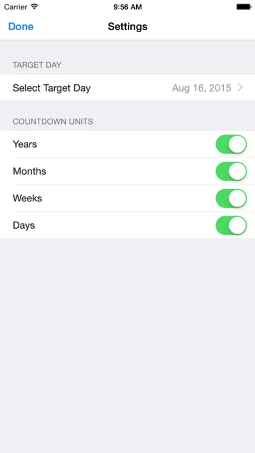 Perhaps you want to see the number of weeks or months instead of just days. Unlike other countdown apps you can freely select the time units displayed according to your preference - years, months, weeks and/or days. When the countdown is completed you will get a clean and simple notification.