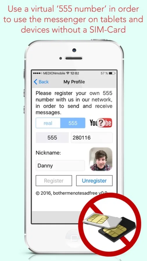 BotherMe&U even without a SIM-Card.