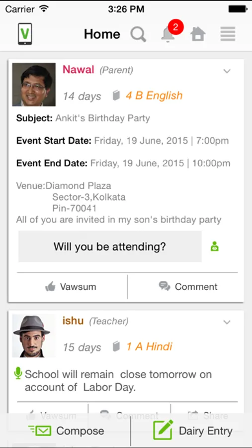 Vawsum essentially is a parent teacher engagement tool that gives real time update of kids in school