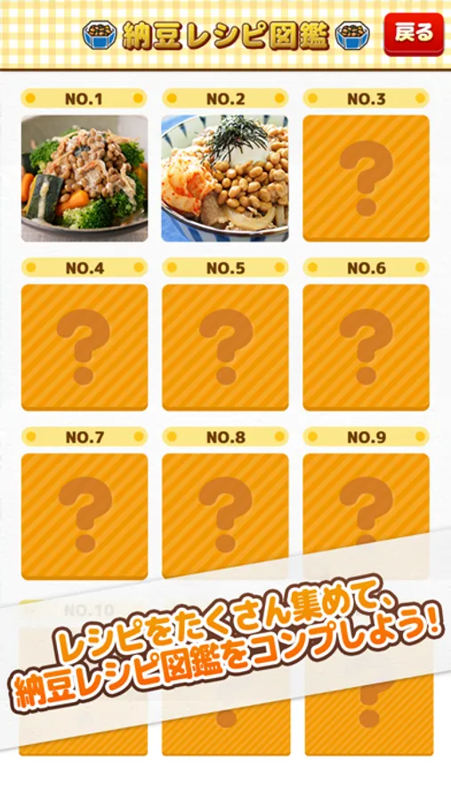 納豆連公認!ゲーム中にゲットできるレシピを集めると…納豆レシピの図鑑が完成!