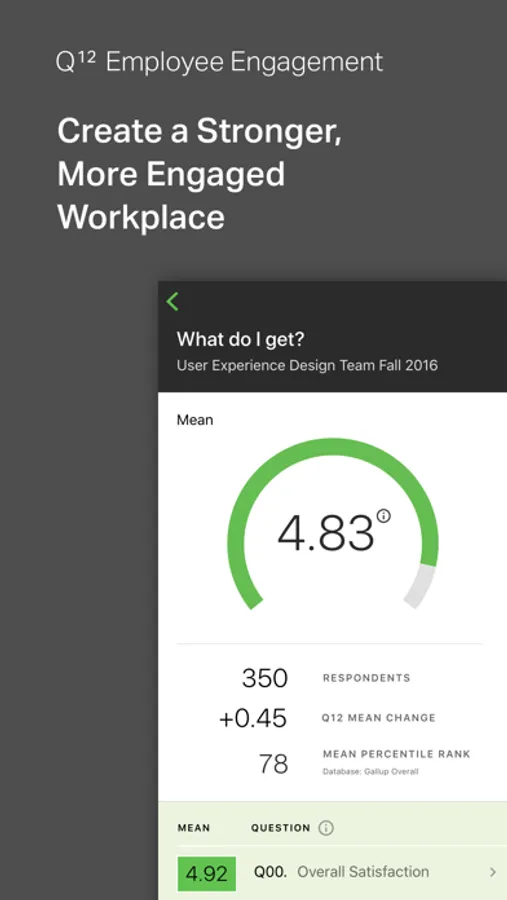 For clients, this mobile app provides instant access to reports and insights about your team based on Q12, CE3 and pulse survey results, as well as your team’s CliftonStrengths assessments. The app also includes action planning tools, learning resources and articles to empower you to improve your team’s performance. With the Gallup Access app, which serves as a companion to your Gallup Access subscription, you put your team’s latest information at your fingertips.