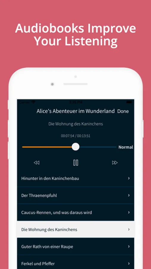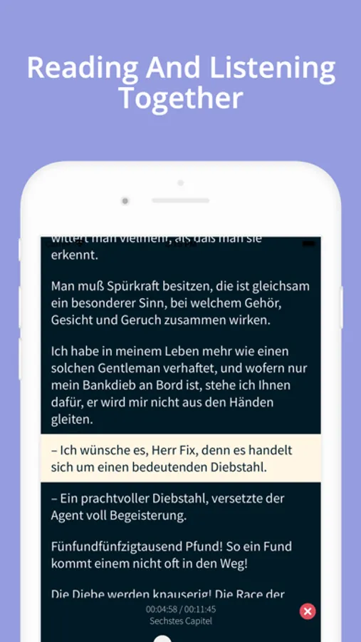 With simultane books feature you can read and listen at the same time. This will have huge impact for you to get familiar with German language. You will learn the reading and listening at the same time. This will help you with writing and speaking.