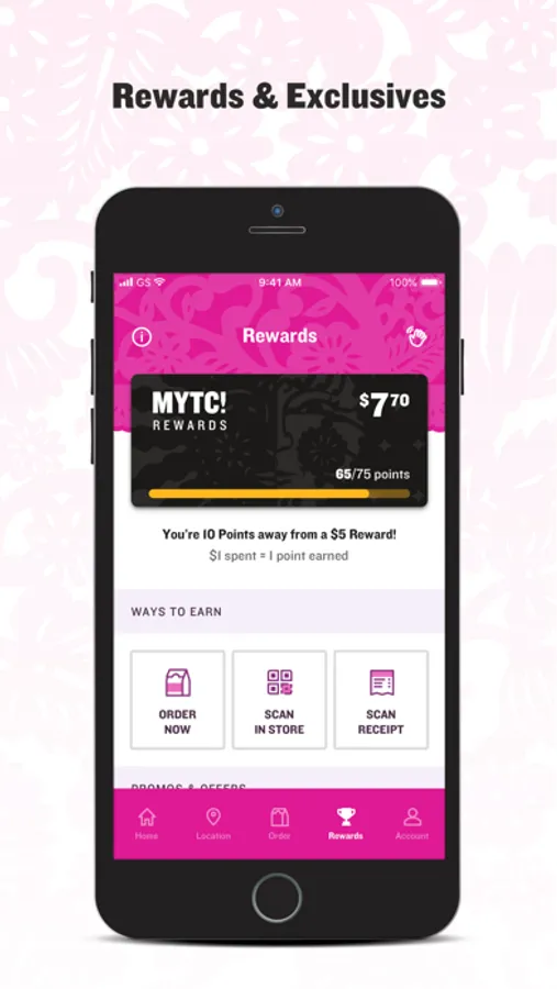 Download the Taco Cabana app to get more out of your Taco Cabana experience. Earn points for every $1 spent. Every 75 points gets you a $5 reward.