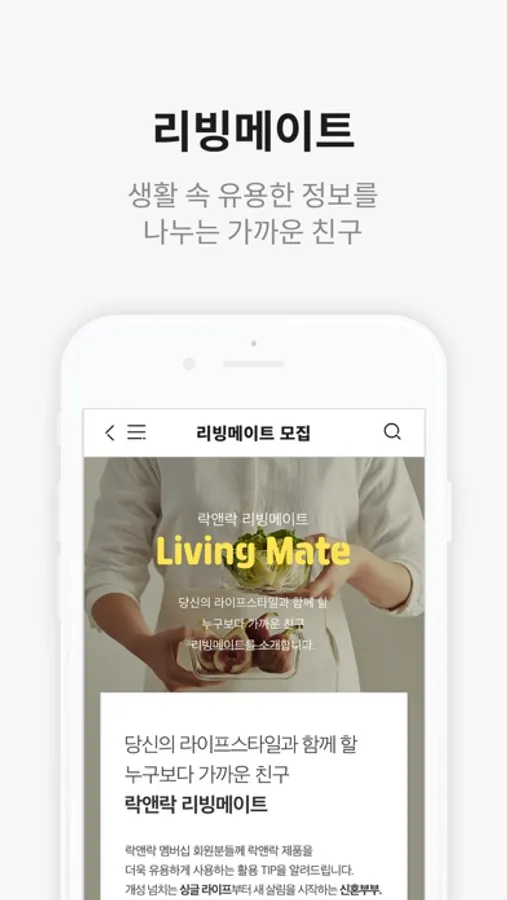 리빙에 관심있는 락앤락 회원이라면 누구나 리빙메이트로 지원할 수 있어요.