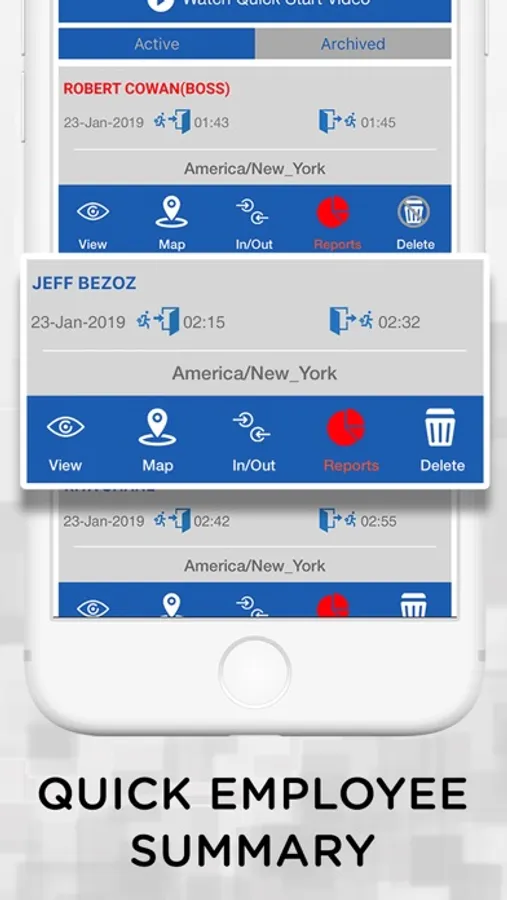 The time card app uses the devices' GPS to track each punch in & out event to time log them in convenient time sheets. Turn this function off for select employees.
