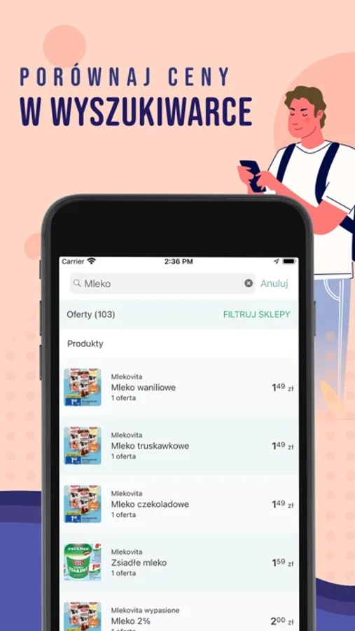 Dzięki porównywarce cen produktów, szybko sprawdzisz, gdzie kupisz najtaniej dany produkt. Porównuj oferty w sklepach, by zaoszczędzić czas i pieniądze. Dzięki liście zakupów, szybko i łatwo stworzysz listę produktów, które chcesz kupić. Mobilna lista zakupów w Twoim telefonie. Mobilna lista zakupów już w Twoim telefonie! Planuj zakupy, by o niczym nie zapomnieć. Twórz listę podczas przeglądania gazetki, zaznaczając wybrane produkty, którą później możesz udostępnić bliskim lub znajomym. Udostępniona lista zakupów będzie aktualizowana na bieżąco, w czasie rzeczywistym, by nie przegapić zmian. Gdy ktoś wprowadzi zmianę na liście zakupów, otrzymasz powiadomienie. Udostępnij listę, by ktoś zrobił zakupy dla Ciebie.
