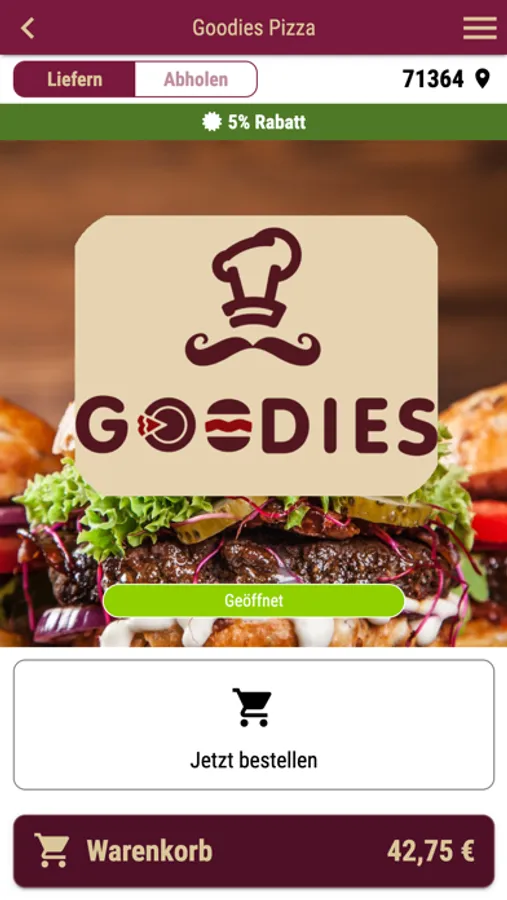 Immer frisch und mit den besten Zutaten zubereitet. Wir bieten eine große Auswahl an wohlschmeckenden Speisen. Ob mit Fleisch oder vegetarisch – es ist für jeden Geschmack das Richtige dabei und die großen Portionen sorgen dafür, dass Sie von dem leckeren Essen auch richtig satt werden - Goodies Pizza