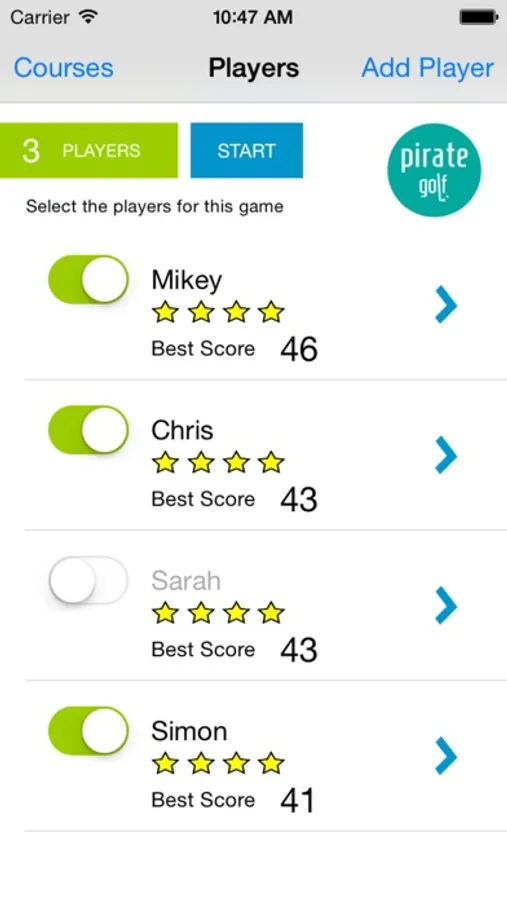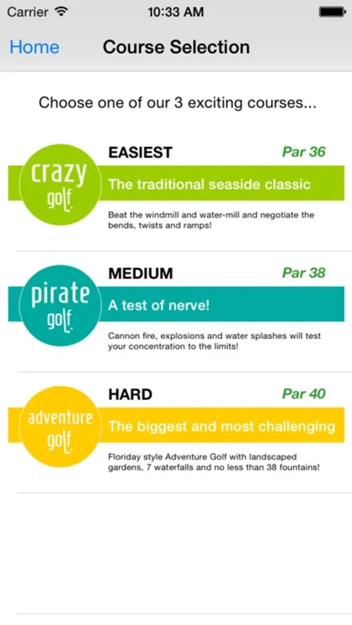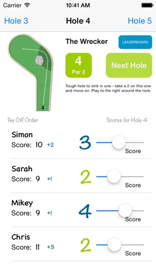 A scoring app for the Hastings Mini Adventure Golf courses. Use the app to record your own score and that of your friends as you navigate around the course. There are images of each hole and animations for the best route to take to use the slopes to your advantage. Pro tips will also help you make the wise play and keep away from the traps, bunkers, ditches and other dangers. Each player has a 'star' rating. The app can keep a record of each round of golf you have played. Register an account with hastings adventure golf and start earning reward points with the app. Take a selfie with your friends and Caddie our mascot.