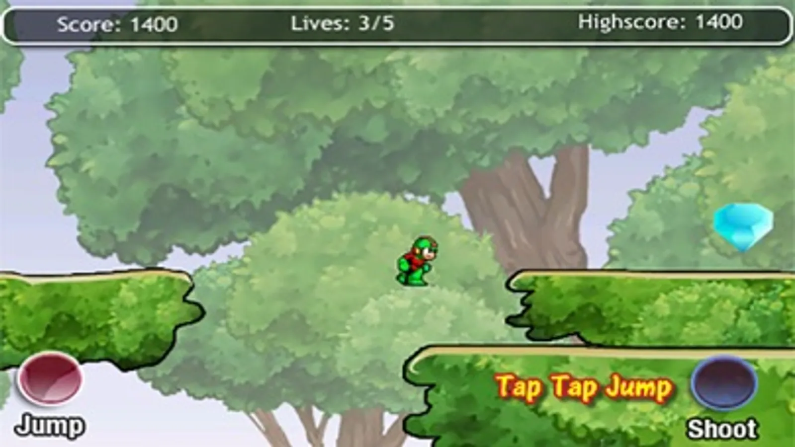You have to collect all the gems and jump over the mushrooms or shoot them out of your way. And remember - you have always to land on a platform!