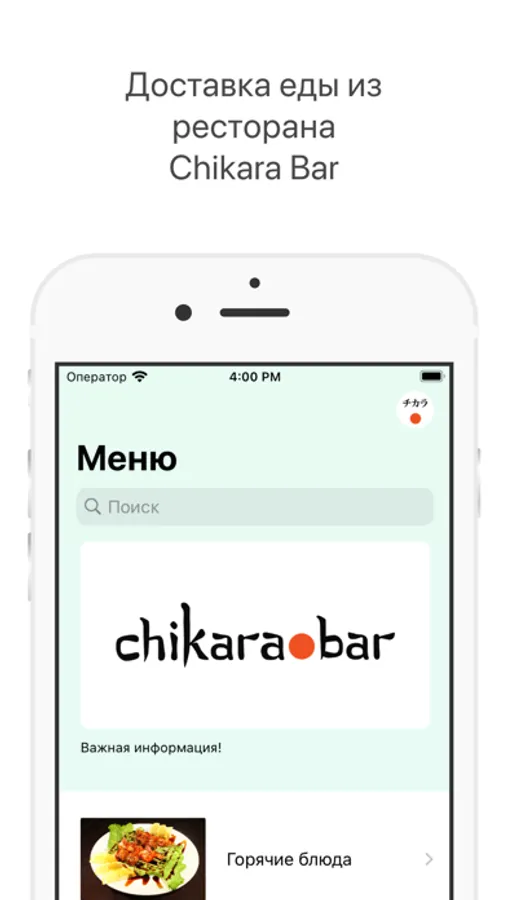 Скачайте приложение Chikara Bar для быстрой доставки вкусной еды.