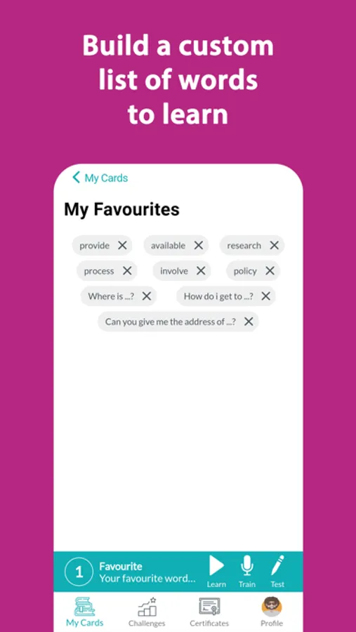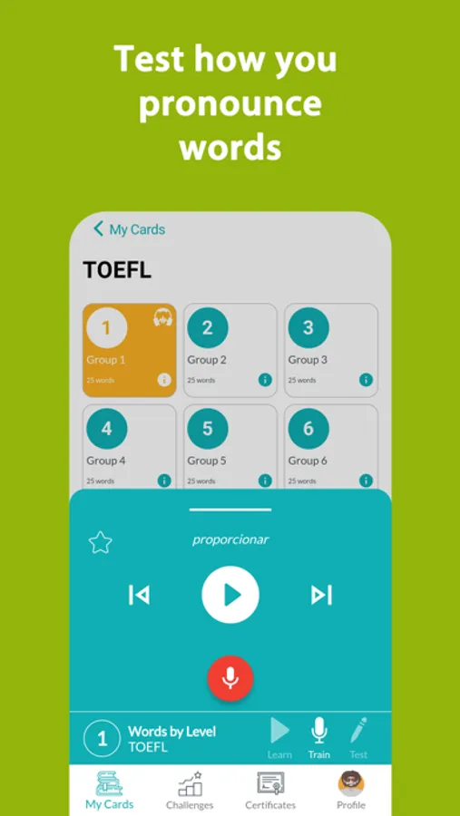 Listen and memorize the words you've chosen, pronounced by native speakers while you do sports, walk in the park, cook, carry out everyday tasks, travel in the car or with the bus.