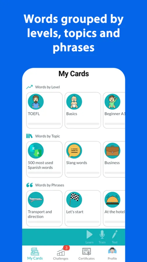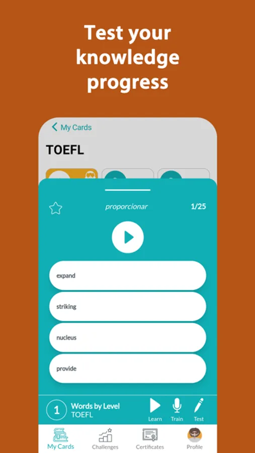 Worddio combines the most effective methods to quickly learn new words. Its features help you memorize, pronounce and spell.
