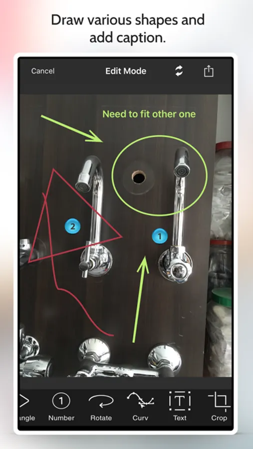 Snap Markup is a Markup photo tool. It markup or annotate the photo with various shapes and send it anywhere. Snap Markup provides various draw shapes like free draw, rectangle, triangle, line, arrow, circle, numbers, brazier curve, Blur effect, Focus, rotations, text and crop.
