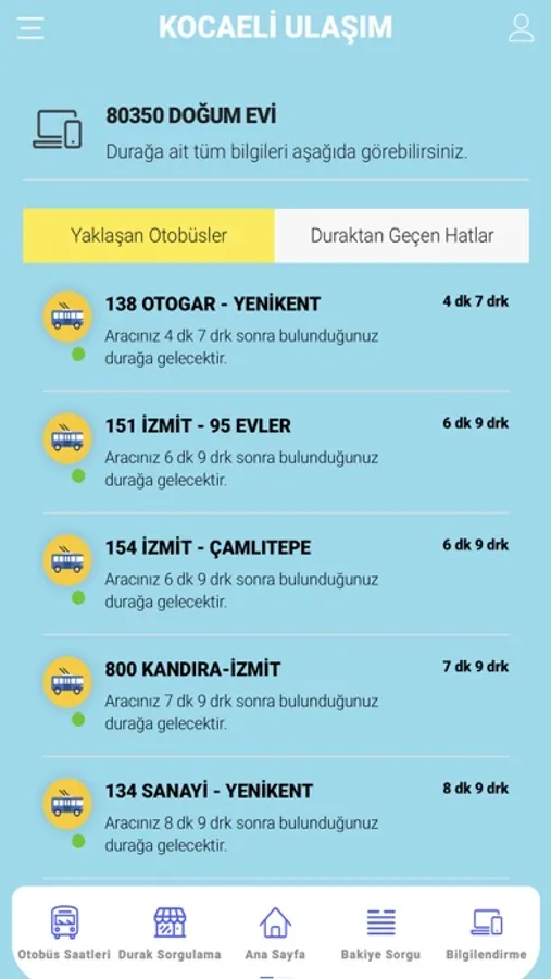 Kocaeli Ulaşım uygulamamız ile en yakın olduğunuz durağı, o durağa yaklaşan otobüslerin listesini kaç dk sonra durağa geleceğini öğrenebilirsiniz.