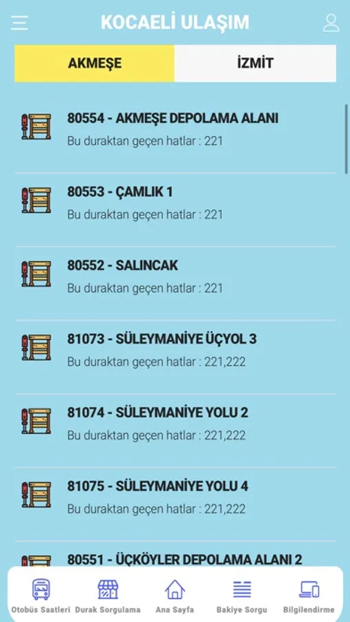 Yolcu Bilgilendirme ile Tüm Durakları Görebilirsiniz.