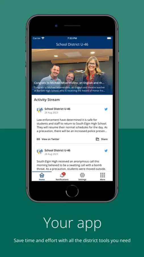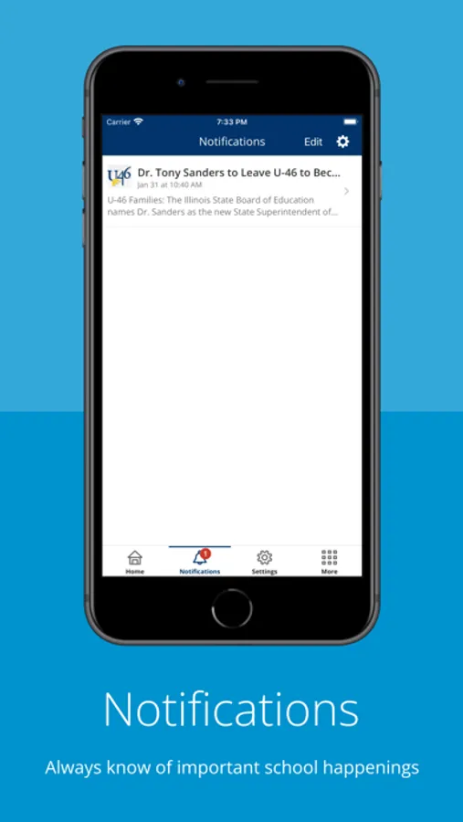 The official School District U-46 app gives you a personalized window into what is happening at the district and schools. Get the news and information that you care about and get involved!
