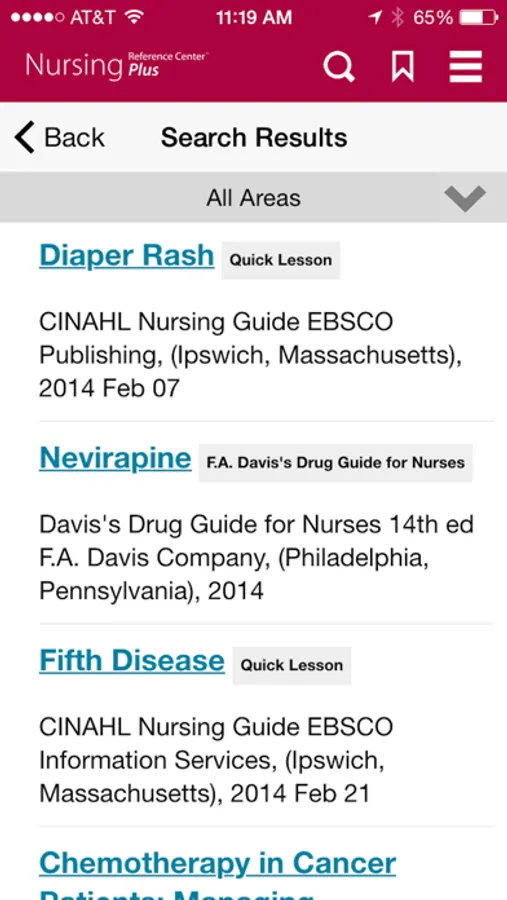 Nursing Reference Center Plus™ is a comprehensive reference tool designed to provide relevant clinical resources to nurses, directly at the point-of-care. This free app is available for staff nurses, nurse administrators, nursing students, and nurse faculty and hospital librarians with an institutional subscription to NRC Plus. It offers the best available and most recent clinical evidence from thousands of full-text documents.